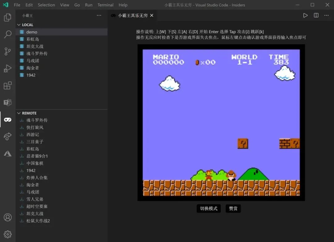 那就是可以直接使用编辑器玩游戏,VSCode 里面竟然隐藏这小霸王游戏机!