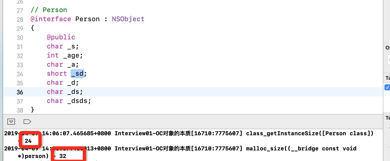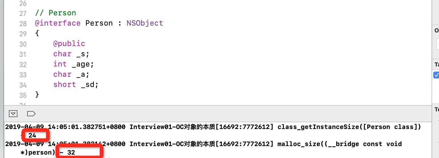 内存分配及使用情况如下图:分配32个 使用24个 (关于分配32个 这个是由于操作系统的内存对齐原则 接下来会讲到)