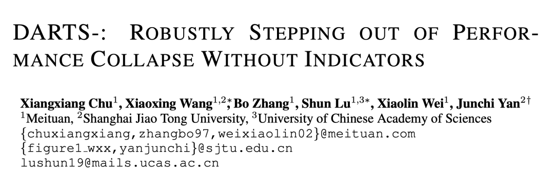 可微分神经网络搜索(DARTS)存在普遍的性能崩塌,现有提升方法使用了先验知识或用指示信号来判别崩塌是否发生,而计算指示信号非常耗时,我们的出发点是能否不通过人为先验或需要耗费算力的指示信号来解决该问题。