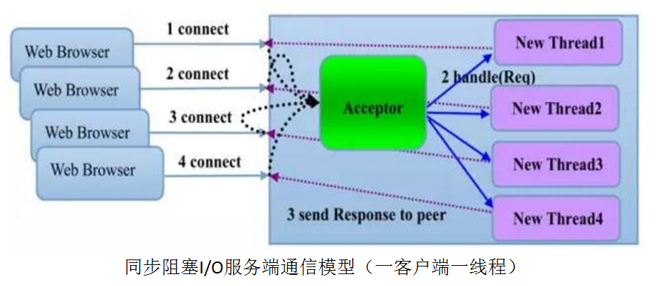 BIO通信(一请求一应答)模型图如下: