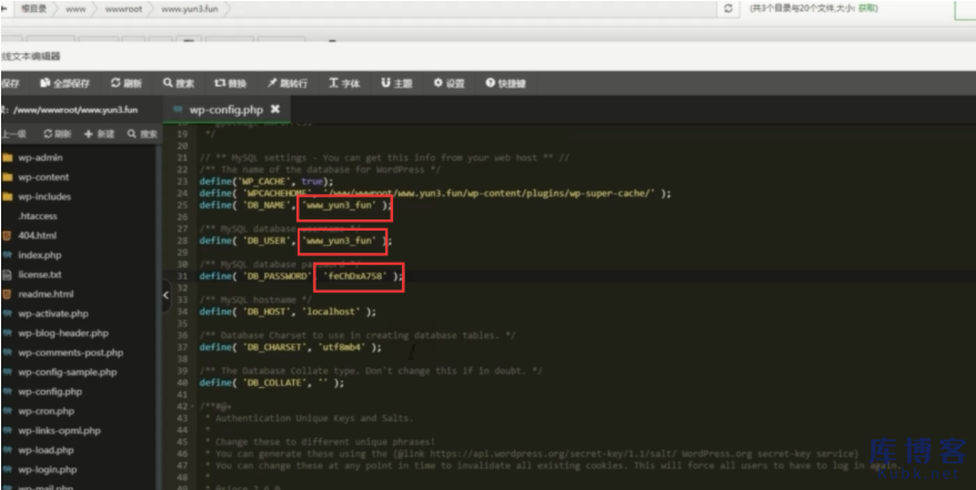 如果数据库名和数据库用户名不一致的,可以在新的云服务器网站里修改wp-config.php文件,修改成新的数据库名用户名和密码,保持一致。