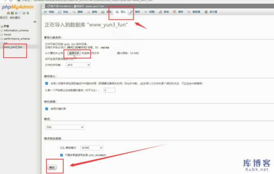 接着,在新的云服务器里打开phpmyadmin面板,把对应的数据库导入进来。