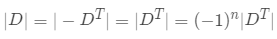 ,在这我们就得到行列式等于行列式的相反数,那么它只能为 0 。