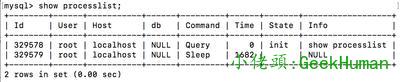 连接器与客户端通信的协议是tcp协议的,连接以后可以使用show processlist;看到执行的连接数