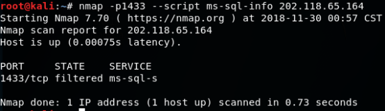 1) nmap -p1433 --script ms-sql-info 202.118.65.164