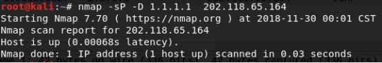>>>nmap -sP -D 1.1.1.1 202.118.65.164
