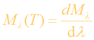单色辐射出射度(单色辐出度):一定温度 T 下,物体单位面积在单位时间内发射的波长在 l~l +dl 内的辐射能 dMl 与波长间隔 dl 的比值