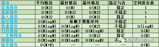常用排序算法复杂度对比: