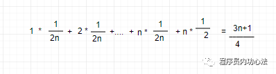 这个概念有点复杂,需要一点点的数学基础,我们还用上图的例子来说明,我们查找数组中值是变量x的位置,那么一共有n+1种可能:在数组[0~n-1]位置上和 不在数组中,我们把每种情况下,查找x需要遍历的次数累加起来,然后除以n+1,就可以得到需要遍历的元素个数的平均值,就是: