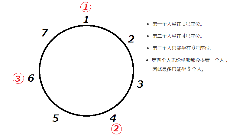 ①第一个人选择 1号座位。
