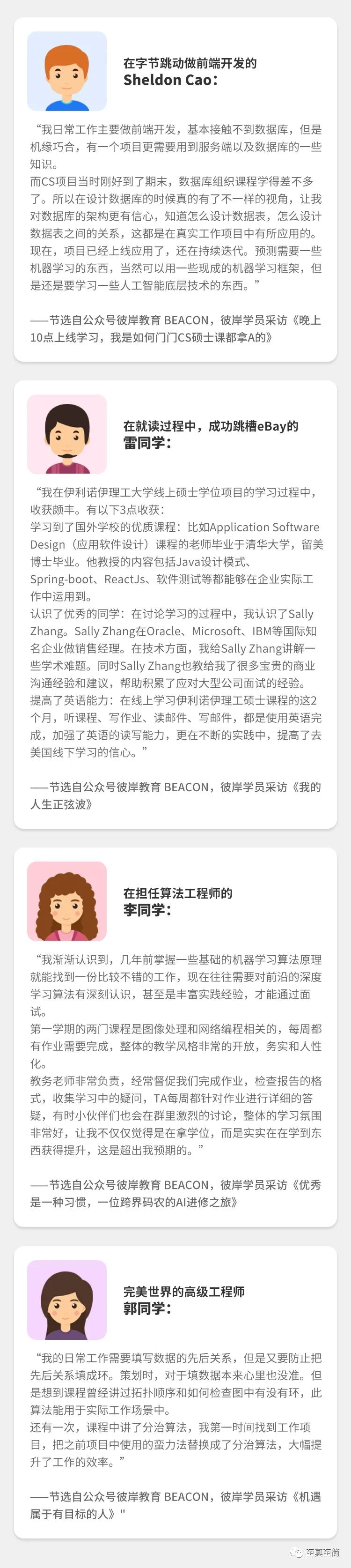 伊利诺伊理工大学在线硕士项目班级群里,除了Jason这种毕业生,还有大量在职开发从业者或者想了解技术逻辑的管理层,因此学习氛围特别浓厚。