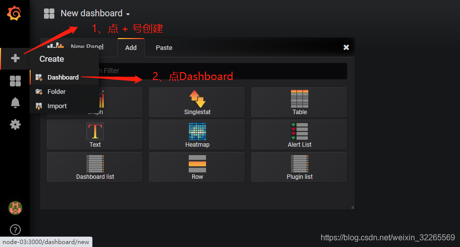 第一步:点击加号,选择Dashboard