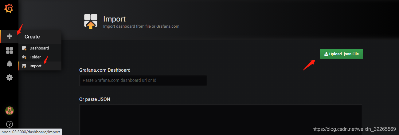 2、在Grafana 中导入json 文件