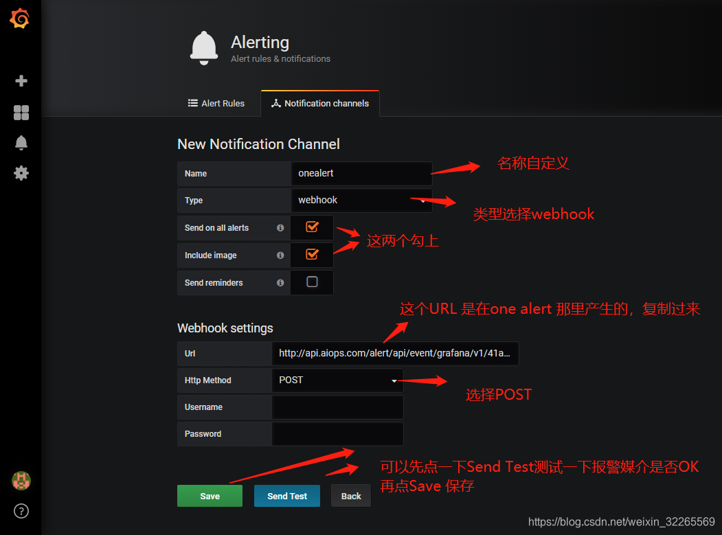 2、在Grafana中配置Webhook URL