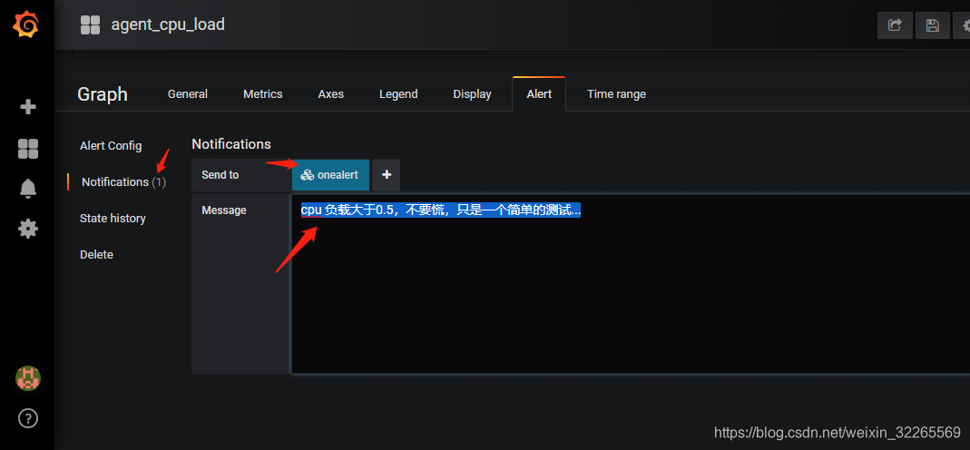 第三步:将配置的Webhook Notification Channel添加到Grafana Alert中