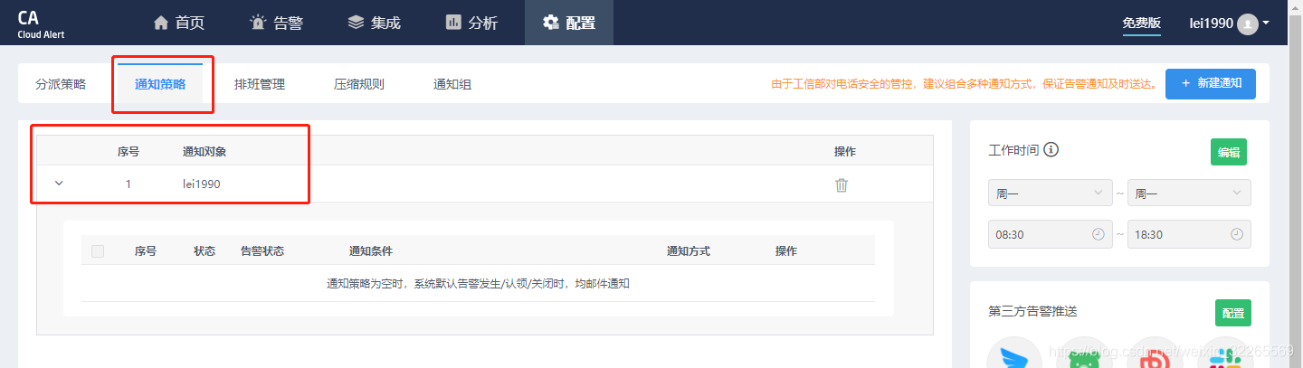设置告警内容:发送给运维负责人