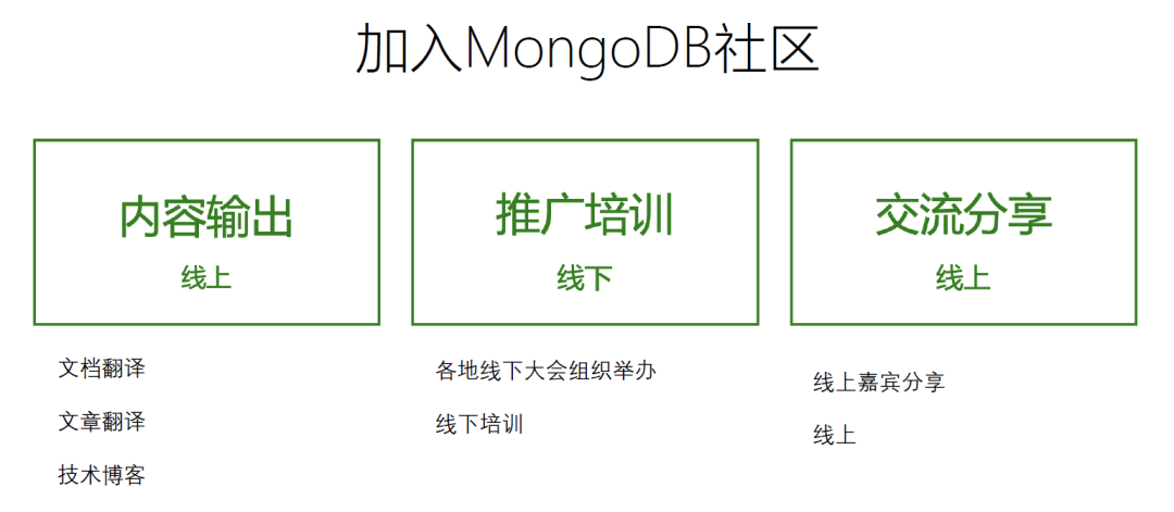 MongoDB中文社区( Mongoing.com)成立于2014年,是大中华区获得官方认可的中文社区,由博客、线下活动、技术问答、社群、官方文档翻译等版块组成。
