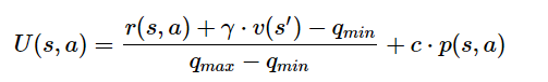 其中,q_min和q_max分别是整个搜索树中观察到的最小和最大r(s,a)+γ⋅v(s')估计。
