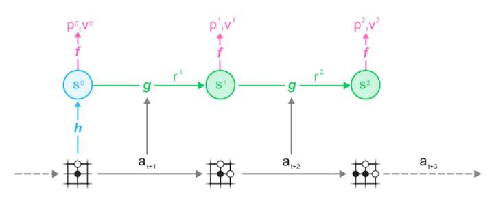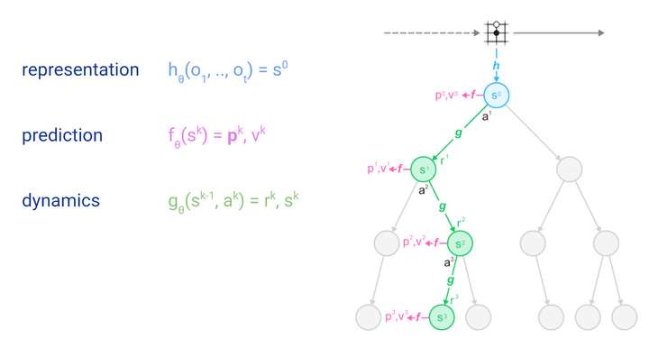 可以看到,MuZero算法由以下三部分组成: