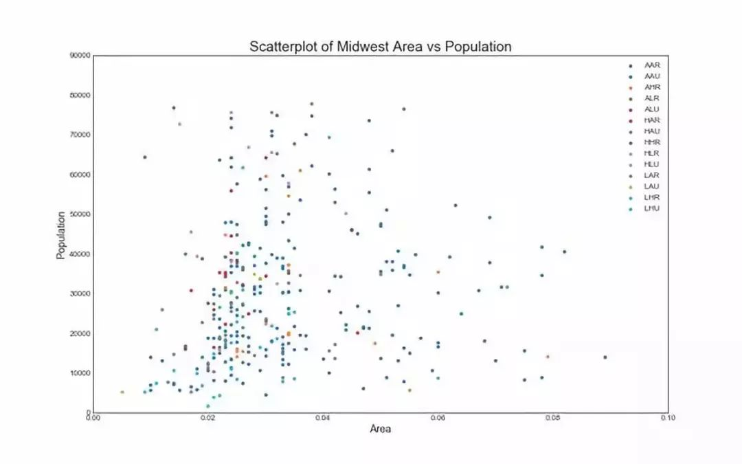 散点图是用于研究两个变量之间关系的经典的和基本的图表。如果数据中有多个组,则可能需要以不同颜色可视化每个组。您可以使用 plt.scatterplot() 方便地执行此操作。