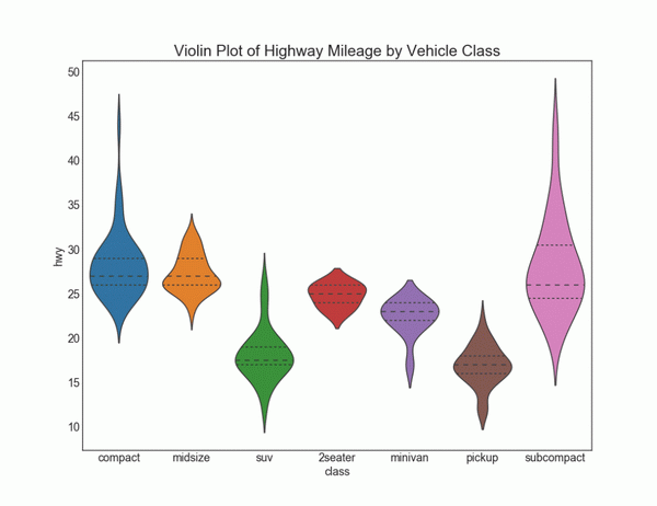 小提琴图是箱形图在视觉上令人愉悦的替代品。小提琴的形状或面积取决于它所持有的观察次数。但是,小提琴图可能更难以阅读,并且在专业设置中不常用。