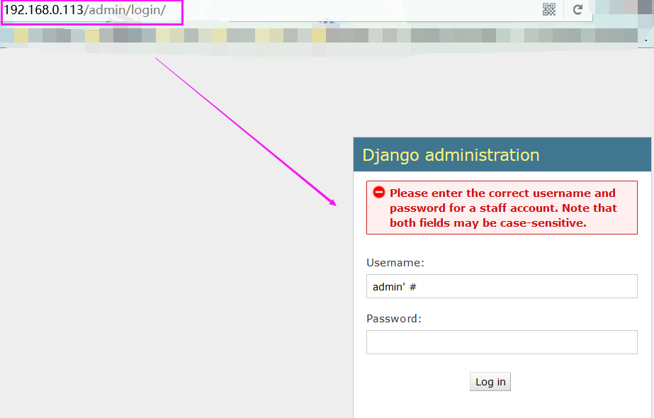 - 访问admin登录页面,并进行了注入尝试,没有成功