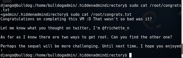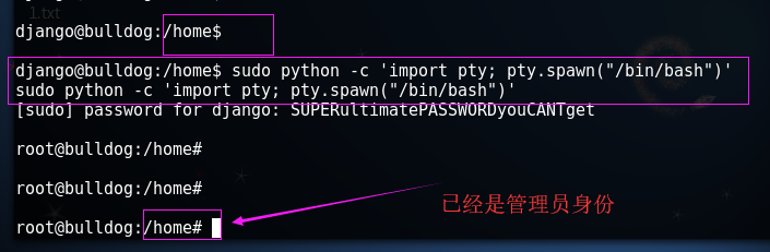 cat /etc/passwd, 发现需要关注的用户有:bulldogadmin、django
