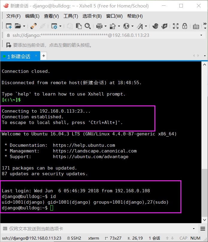 - 如果不解决无法su,还记得有23端口的ssh,也可以使用Xshell通过ssh登录,登录成功后执行sudo su - 提权并获得flag