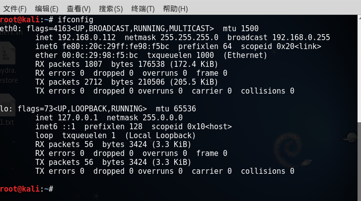- 只有一块无线网卡链接到了互联网,所以kali直接桥接,复制物理网络即可。
