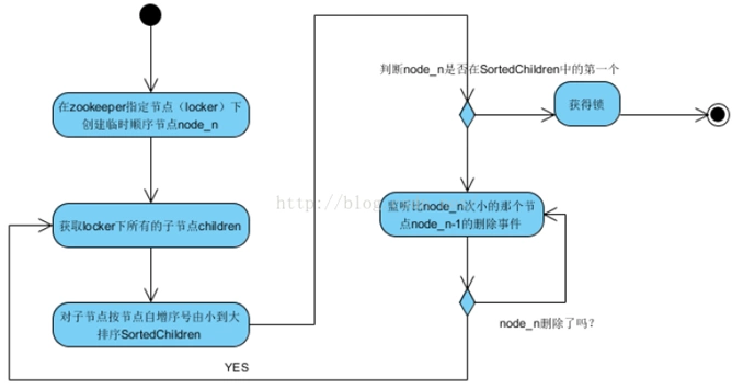 然后调用getChildren(“locker”)来获取locker下面的所有子节点,注意此时不用设置任何Watcher。客户端获取到所有的子节点path之后,如果发现自己创建的节点在所有创建的子节点序号最小,那么就认为该客户端获取到了锁。如果发现自己创建的节点并非locker所有子节点中最小的,说明自己还没有获取到锁,此时客户端需要找到比自己小的那个节点,然后对其调用exist()方法,同时对其注册事件监听器。之后,让这个被关注的节点删除,则客户端的Watcher会收到相应通知,此时再次判断自己创建的节点是否是locker子节点中序号最小的,如果是则获取到了锁,如果不是则重复以上步骤继续获取到比自己小的一个节点并注册监听。当前这个过程中还需要许多的逻辑判断。