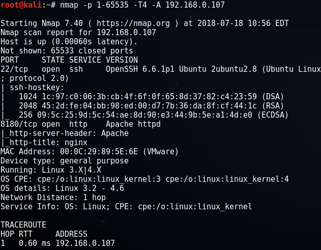 nmap -p 1-65535 -T4 -A 192.168.0.107