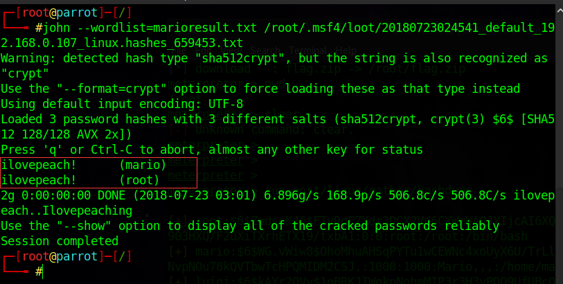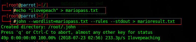 用john来根据 ilovepeach 这个密码匹配生成一个简单字典,为 marioresult.txt