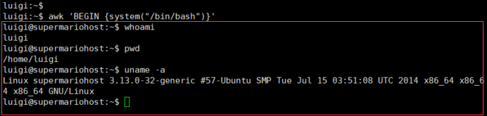 这样的话,我们可以通过 awk 'BEGIN {system("/bin/bash")}'