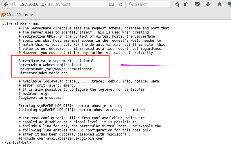 它将从/var/www/supermariohost目录中提供文件来服务mario.php。