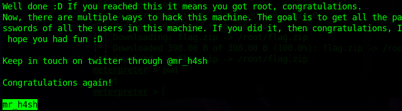 现在需要把他下载下来,因为我现在是root权限,使用msfvenom创建一个Meterpreter可执行文件,