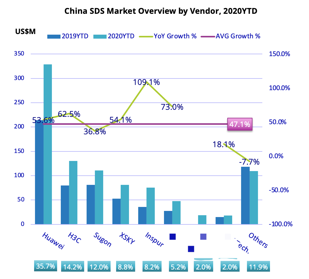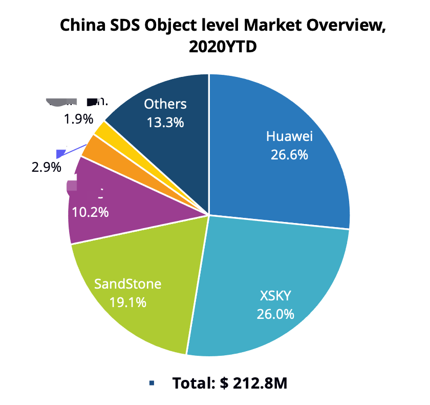 我们看到,SDS的TOP5厂商是Huawei、H3C、Sugon、XSKY和Inspur,其中聚焦SDS的Startup公司只有XSKY,其他都是服务器厂商,销售模式上更喜欢捆绑自己的服务器进行销售。