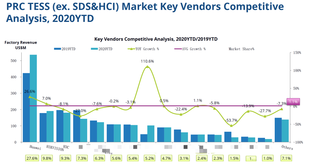 而整个中国存储市场,整体的增长率只有12%。但是,传统的存储TESS,前三个季度的整体增长只有1.1%,相比去年只是略有增长而已。也就是传统存储基本没有太多增长。