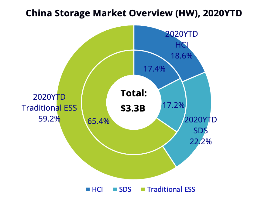 也就是传统存储失去的份额,80%被SDS抢去了,另外20%被HCI抢去了。