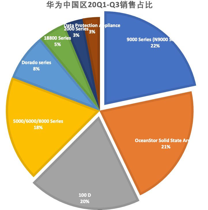 大家知道,华为存储的产品线比较全,我们看一下华为存储的销售占比来验证一下。我们看到,华为的分布式存储(OceanStor 100D和9000属于分布式存储,也属于SDS范畴)的占比已经达42%,也可以理解为SDS占比超过了40%,而且这还不算超融合产品。