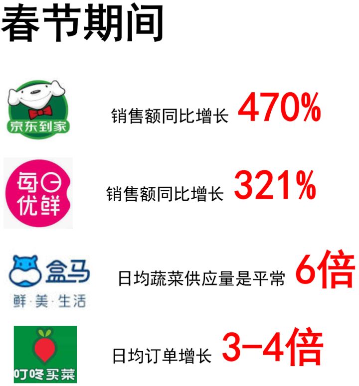 以上数据可以看到,生鲜电商还有巨大的人口红利,而这次疫情让生鲜电商们免费得到了一次超大规模的用户教育。