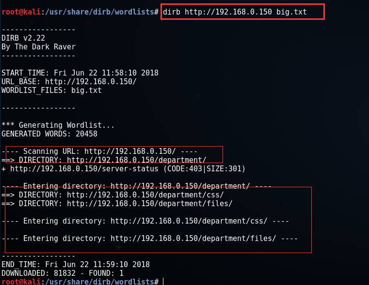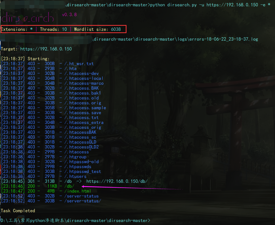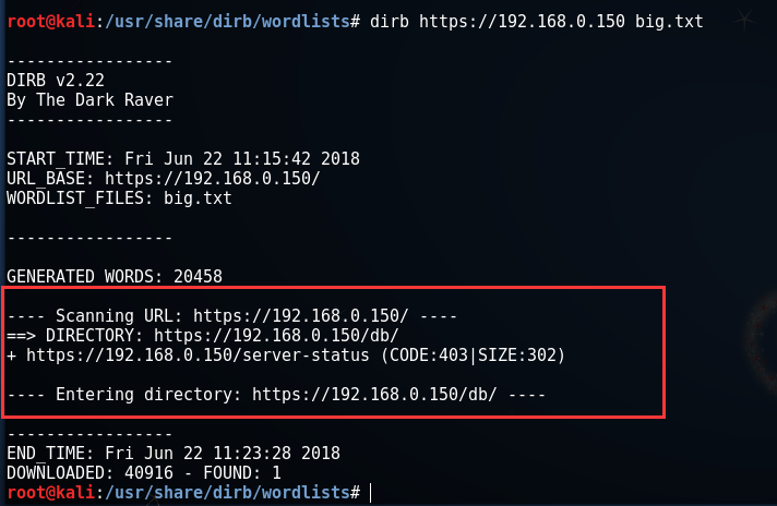 我们尝试扫描目录,大家在windows常用御剑,这里推荐kali下的dirb ,或者dirsearch.py脚本