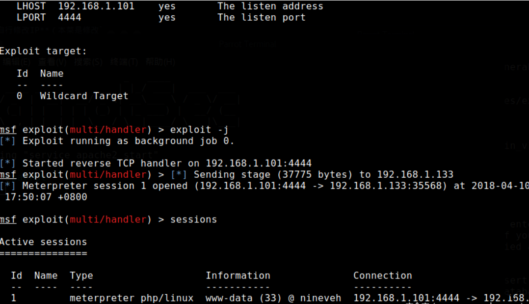 反向shell获取参考 http://pentestmonkey.net/cheat-sheet/shells/reverse-shell-cheat-sheet