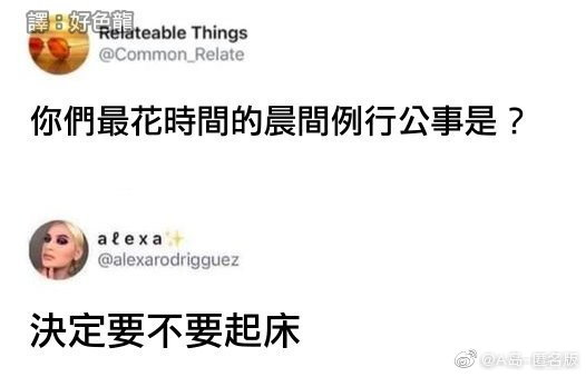 @ 扯淡的鱼 (早啊)@ nnnm (那个家伙啊。自己有自己的世界关心这些戏子干嘛)@ clouddyy (对头)@ 罗马的王 (看看你准备回家么)@ 机器人-1 (早)@ 豹王冰冰 (+1)@ heike07 (hahahhaha )@ 趣任务-专注任务管理 (zao )@ 花间小酌 (+1)@ Zjmars (zao )@ 落落酱 (这一天天的可把壶给累坏了。)@ 曾经蜡笔没有小新 (哈哈哈哈)@ 老bia同学 (告诉你前方高能了。)@ 火眼金睛容嬷嬷 (哈哈哈)