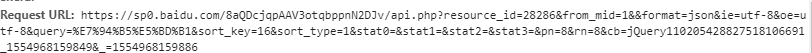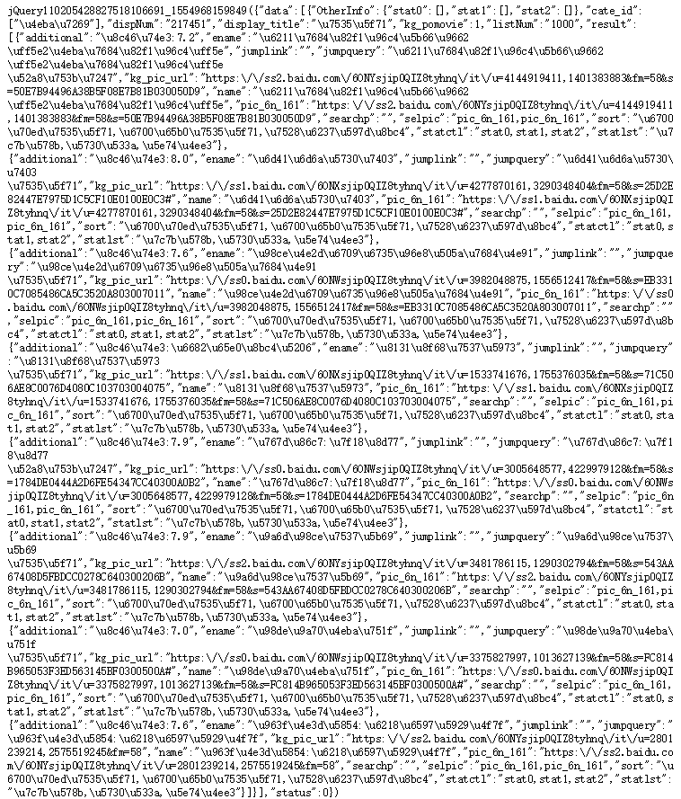 urlbase = "https://sp0.baidu.com/8aQDcjqpAAV3otqbppnN2DJv/api.php?resource_id=28286&from_mid=1&&format=json&ie=utf-8&oe=utf-8&query=%E7%94%B5%E5%BD%B1&sort_key=16&sort_type=1&stat0=&stat1=&stat2=&stat3=&pn="