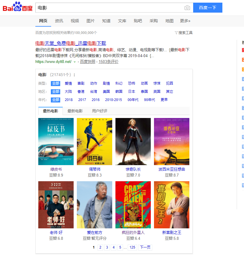 url='https://www.baidu.com/s?ie=utf-8&f=8&rsv_bp=1&rsv_idx=1&tn=44004473_1_oem_dg&wd=%E7%94%B5%E5%BD%B1&rsv_pq=c30325e3000821d1&rsv_t=a23ejDCMhrNpbUK9fSZYvGt62pChqFxtcBIduHebPB%2BFDC%2BPosF8jTkgd1ZiL4KWiuTzBg5rtwY&rqlang=cn&rsv_enter=1&rsv_sug3=5&rsv_sug1=4&rsv_sug7=100'