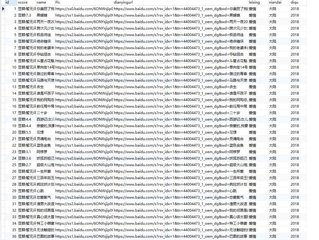 在json字符串中 我们可以找到 picurl 而电影名字点开一部电影可以发现前部分的域名都是一样的 再加上不同的电影名字。