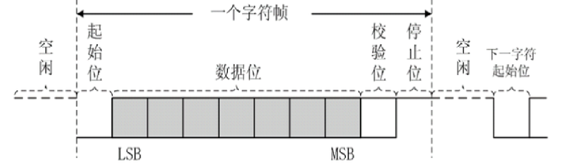 UART串口通信需要两个信号线来实现,一根用于串口发送,另外一根负责串口接收。一开始高电平,然后拉低表示开始位,接着8个数据位,然后校验位,最后拉高表示停止位,并且进入空闲状态,等待下一次的数据传输。