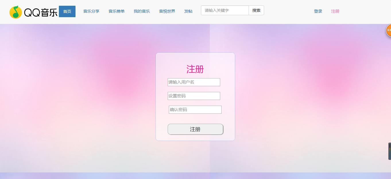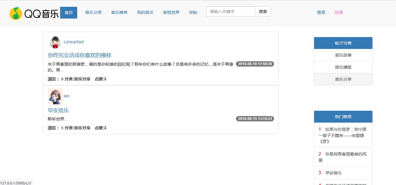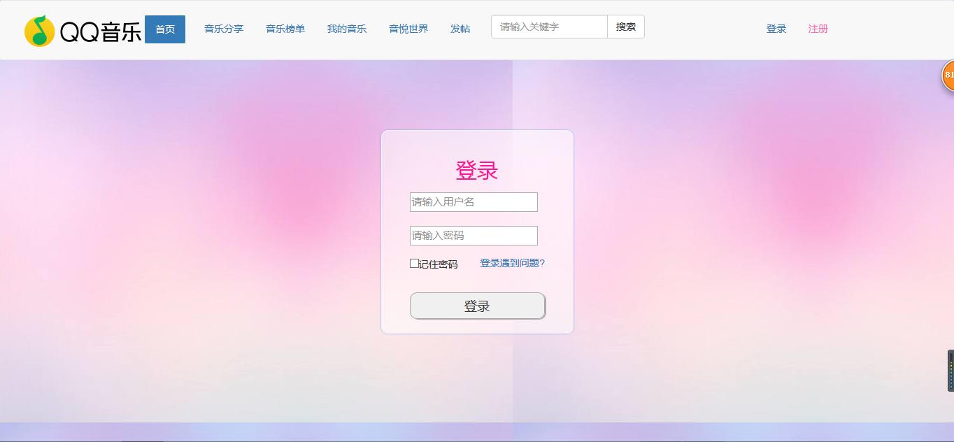 1.网站允许不登录的游客访问,游客可以在网站首页查看网站用户发布的相关帖子,可以查看音乐榜单,但是只能看当前页的帖子,不可以过页查看,并且不允许评论和发布帖子。