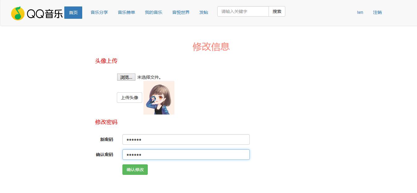 5.网站用户登录后,可以浏览自己发布过的帖子,发过的评论和查看自己的个人信息,也可以重新修改头像和密码。