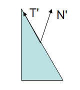 之所以法线不能直接使用UNITY_MATRIX_MV进行变换,是因为法线是向量,具有方向,在进行空间变换的时候,如果发生非等比缩放,方向会发生偏移。为什么呢?举个栗子,我们可以简单的把法线和切线当成三角形的两条边,显然,三角形在空间变换的时候,不管是平移,还是旋转,或者是等比缩放,都不会变形,但是如果非等比缩放,就会发生拉伸。所以法线和切线的夹角也就会发生变化。(而切线在变换前后,方向总是正确的,所以法线方向就不正确了)。下图,T、T'是切线,N、N'是法线